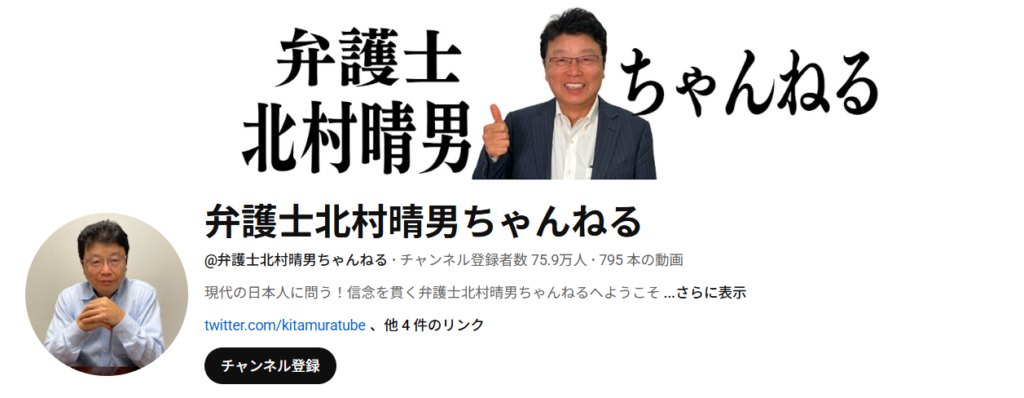 | YouTubeチャンネル名 | 弁護士北村晴男ちゃんねる |