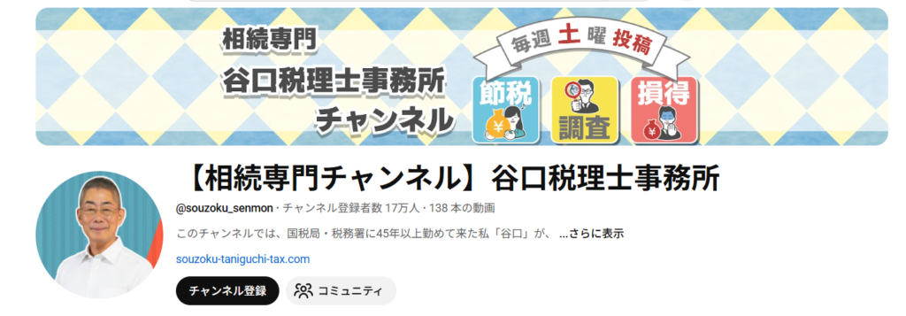 | YouTubeチャンネル名 | 【相続専門チャンネル】秋山税理士事務所 |