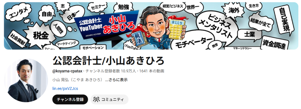| YouTubeチャンネル名 | 公認会計士 / 小山あきひろ |